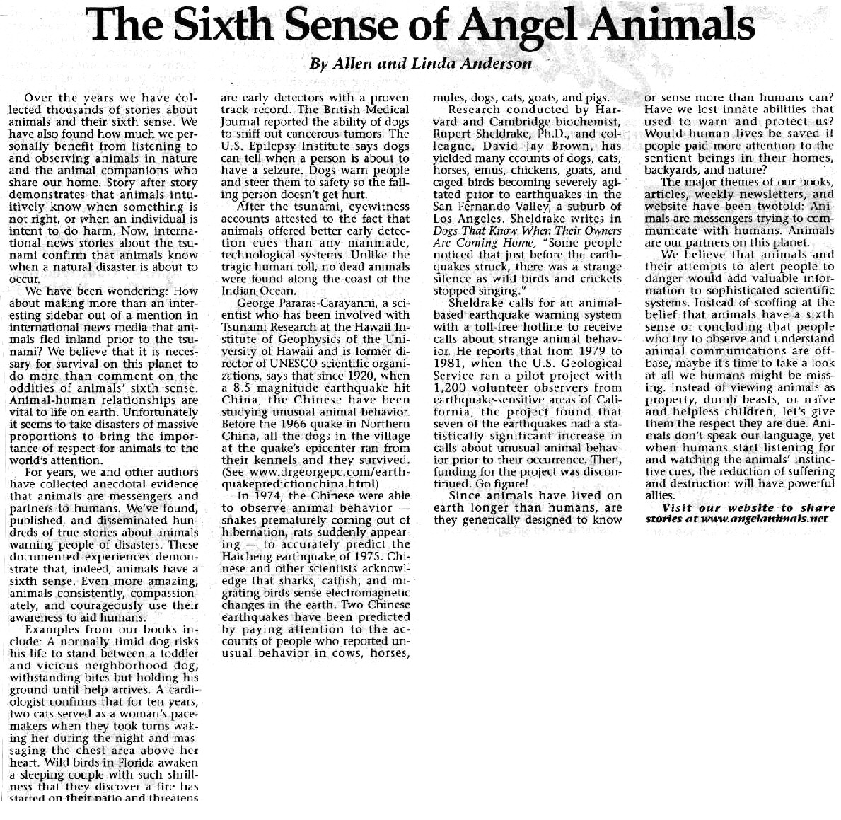 thousands of stories about animals and their sixth sense. We’ve also found how